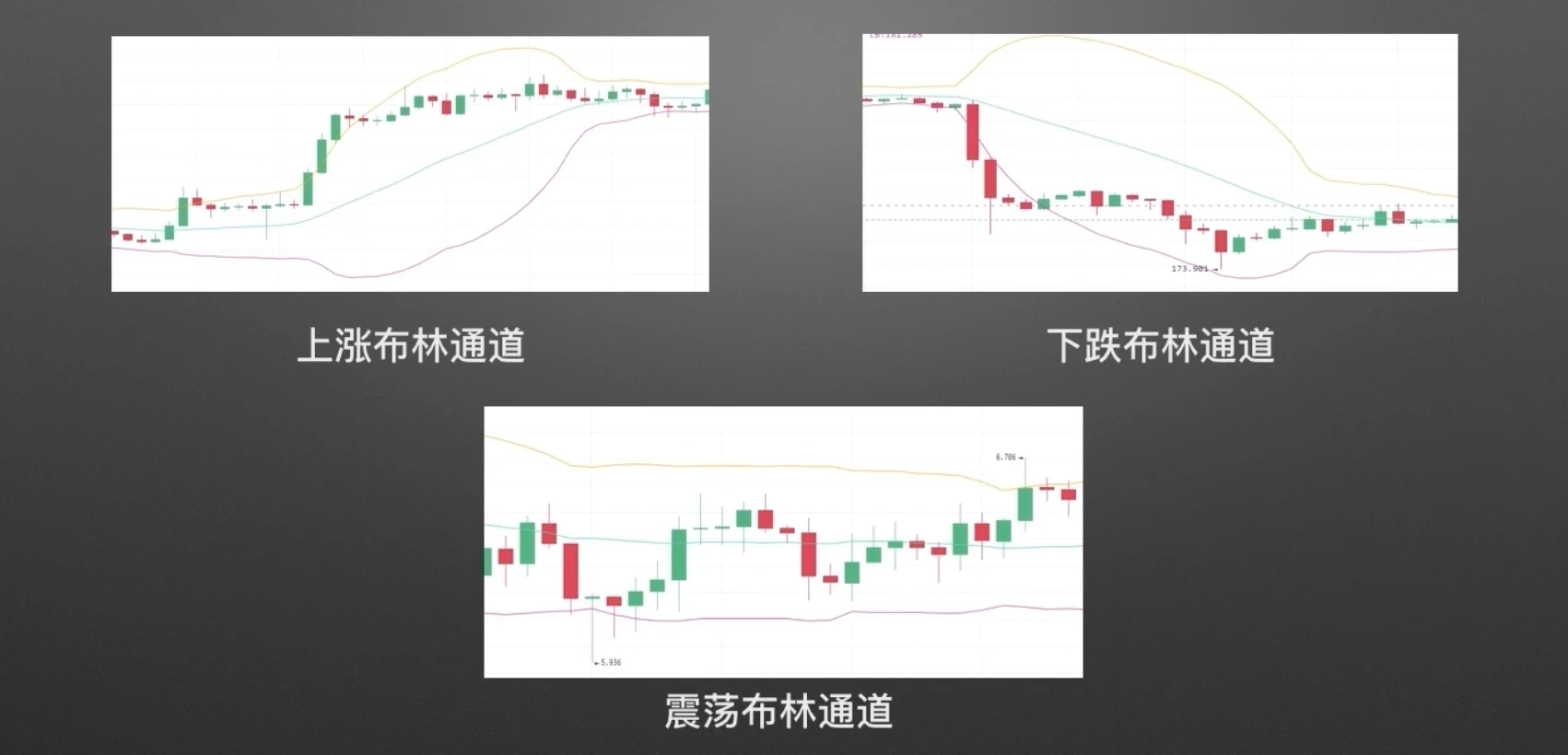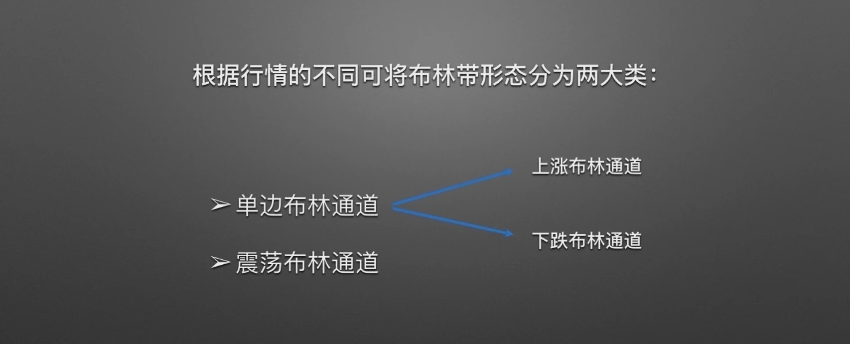 根据行情的不同可将布林带形态分为两大类:单边布林通道与震荡布林通道,其中单边布林通道又分为上涨布林通道和下跌布林通道,