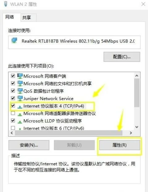 6、接下来,在network属性中找到“IPv4协议”并勾选,然后单击“属性”,如下图所示