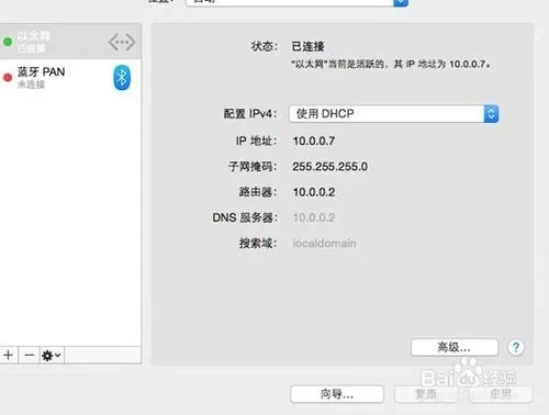 3、单击左侧「以太网」,选择右下角「高级」选项按钮