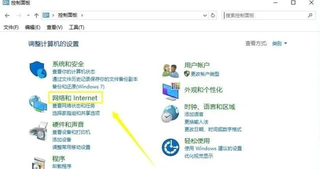 2、单击控制面板中的“网络和Internet”选项,如下所示;