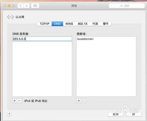 6、手动设置你需要的DNS地址(阿里云公共DNS:223.5.5.5或223.6.6.6),然后单击「好」返回上级页面,再点击「应用」按钮保存即可。