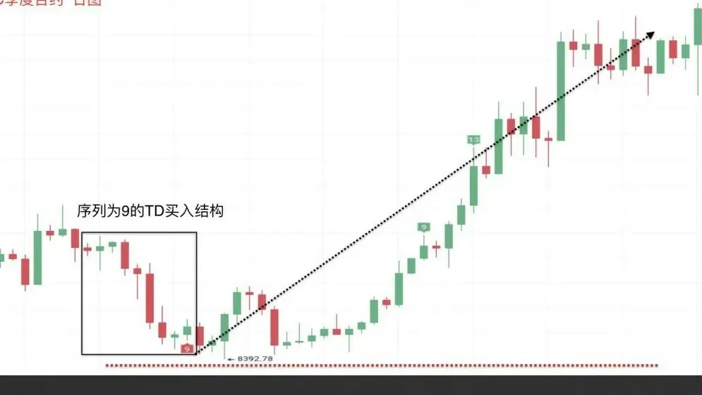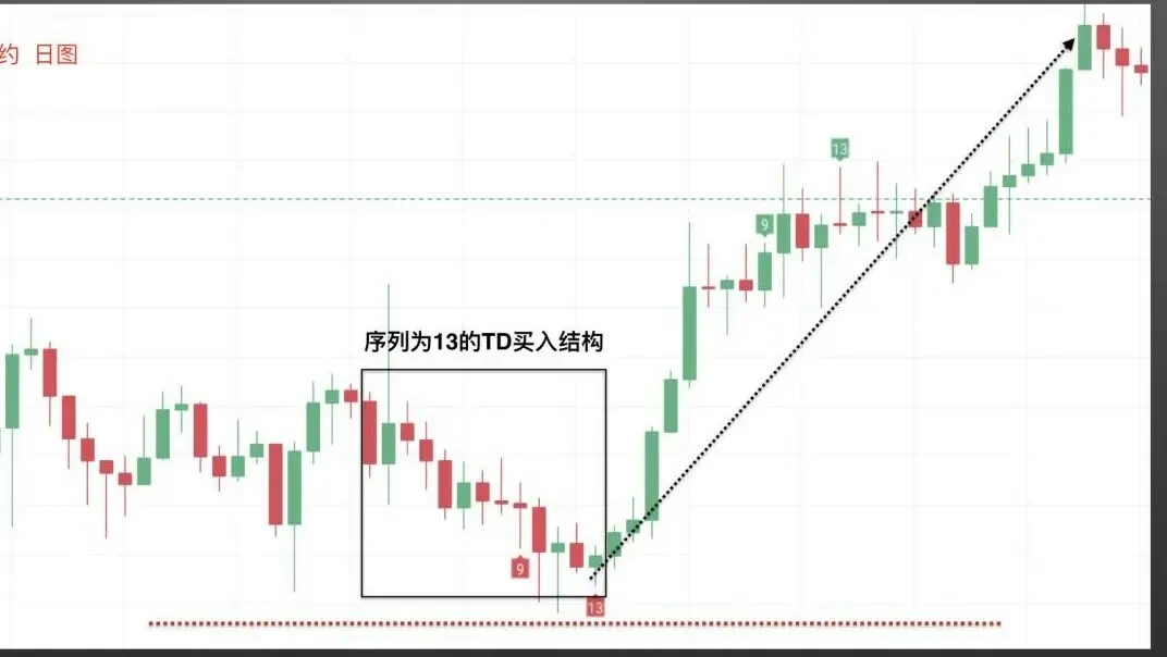 从TD买入结构的第9根K线起,若依然满足计数规则,增加一个计数,计数最大值为13。