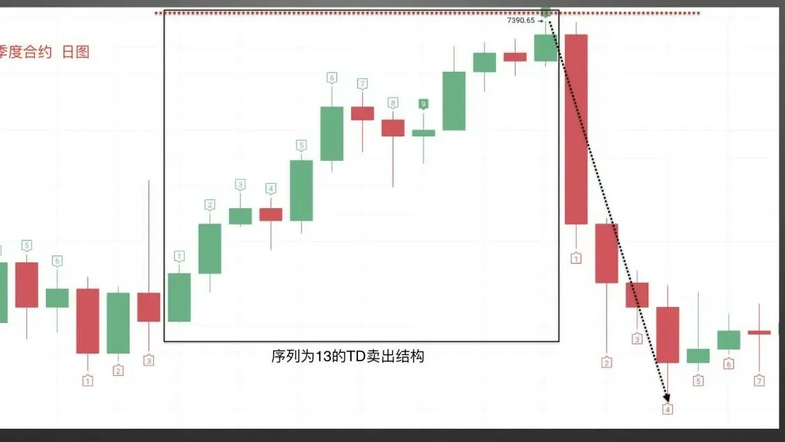 第二我们来看TD卖出信号,形成一个完整的TD卖出结构,价格可能出现反转,可以考虑卖出。