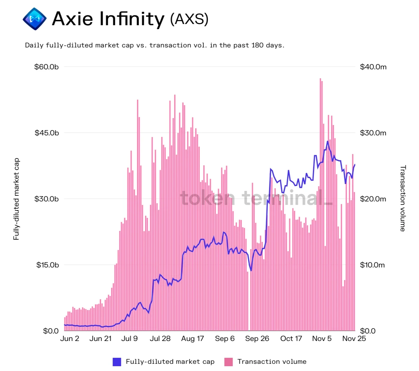 据Token Terminal 数据显示,Axie Infinity确实在今年9-11月的收入有大幅下降,且伴随着各种游戏项目的出现,加上Axie自身打金效应的削弱,Axie Infinity的话题和热度也有所下降。从二级市场交投情况来看,交易量的波动显示,Axie Infinity的活跃情况不如此前,因此,关于“Gamefi的未来发展趋势”的讨论开始多了起来。