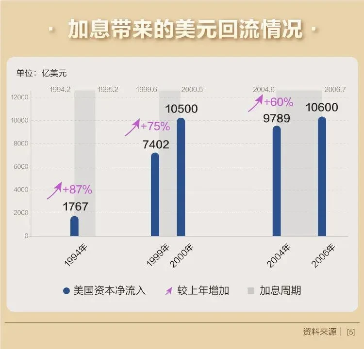 可见,加息不仅会对金融市场造成冲击,还会进一步影响消费市场,那么为何美联储要加息呢?因为美元作为世界通用货币,其潮汐效应会影响着全球经济状况,进而带来全世界各地的资产价格波动。美国恰好可借货币政策调整,完成对其他国家的收割。简单而言,加息使得各国资本逃离本土,回流美国,随之而来的就是土地、企业和矿产等优质资产的价格暴跌,而手握巨资的华尔街资本,就可在此时低价抄底,斩获数倍于往常的收益。