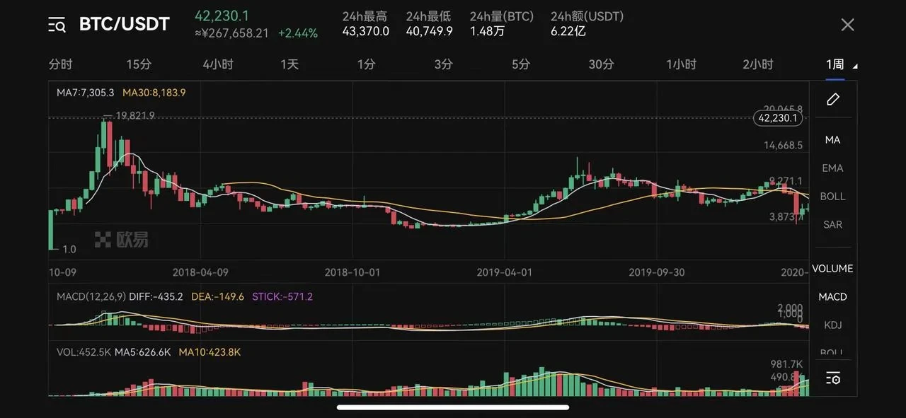反观加密圈走势,这让人揪心:比特币从2018年初的13234美元跌至2018年底的3638美元。通过以下欧易交易平台的比特币K线走势得出,当时的美联储加息对加密货币的影响还是很大的。