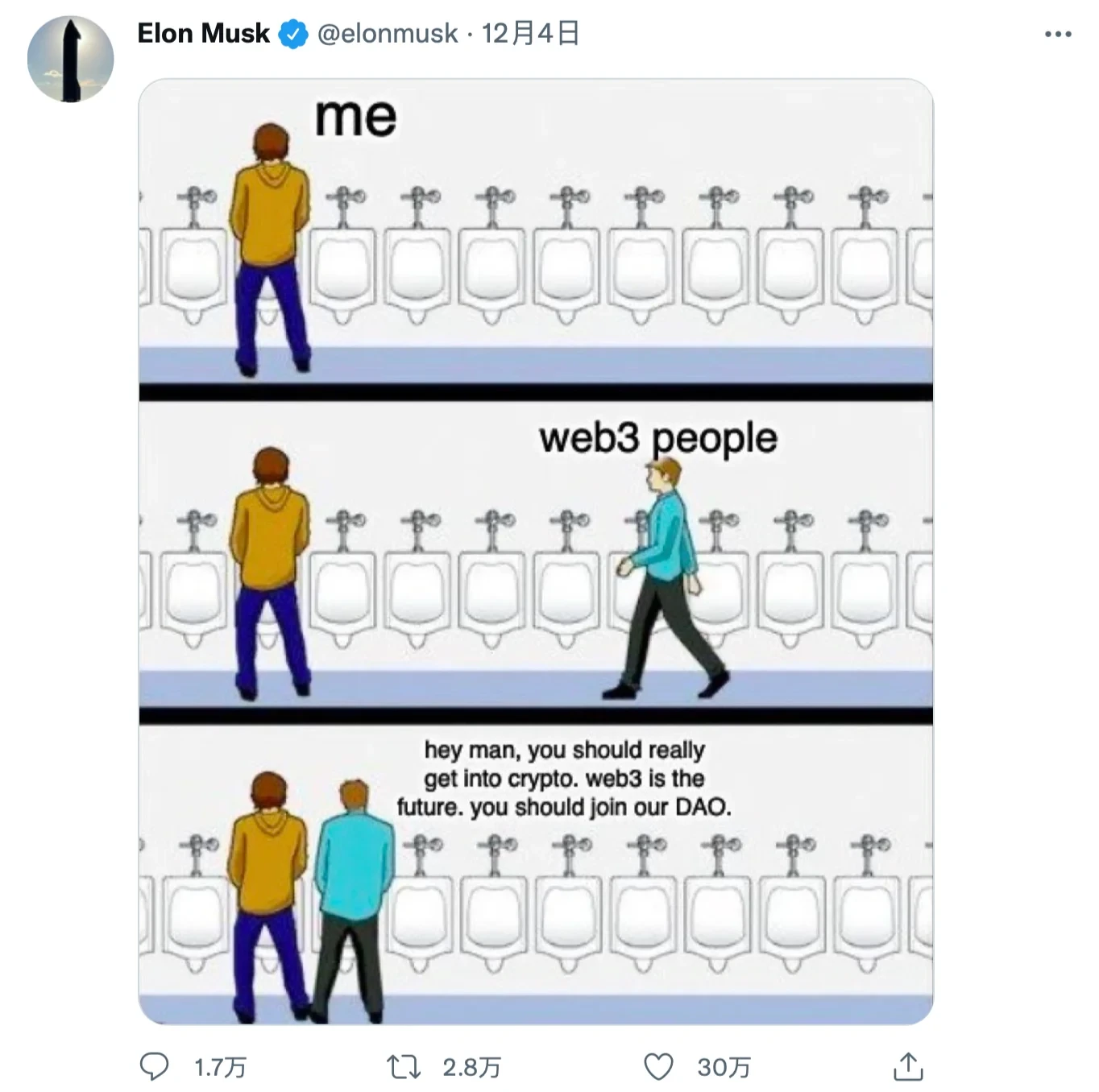 近期,在元宇宙的火爆之下,关于Web3的讨论更是不绝于耳,但不管是传统科技圈人士还是加密人士都有自己的理解。大多人认可Web3的趋势,但也存在完全相反的言论。最为典型的就是近期特斯拉CEO马斯克在推特上发布的带有讽刺web3之意的图片,甚至直接回复推特网友称,“Web3是bull shit”。