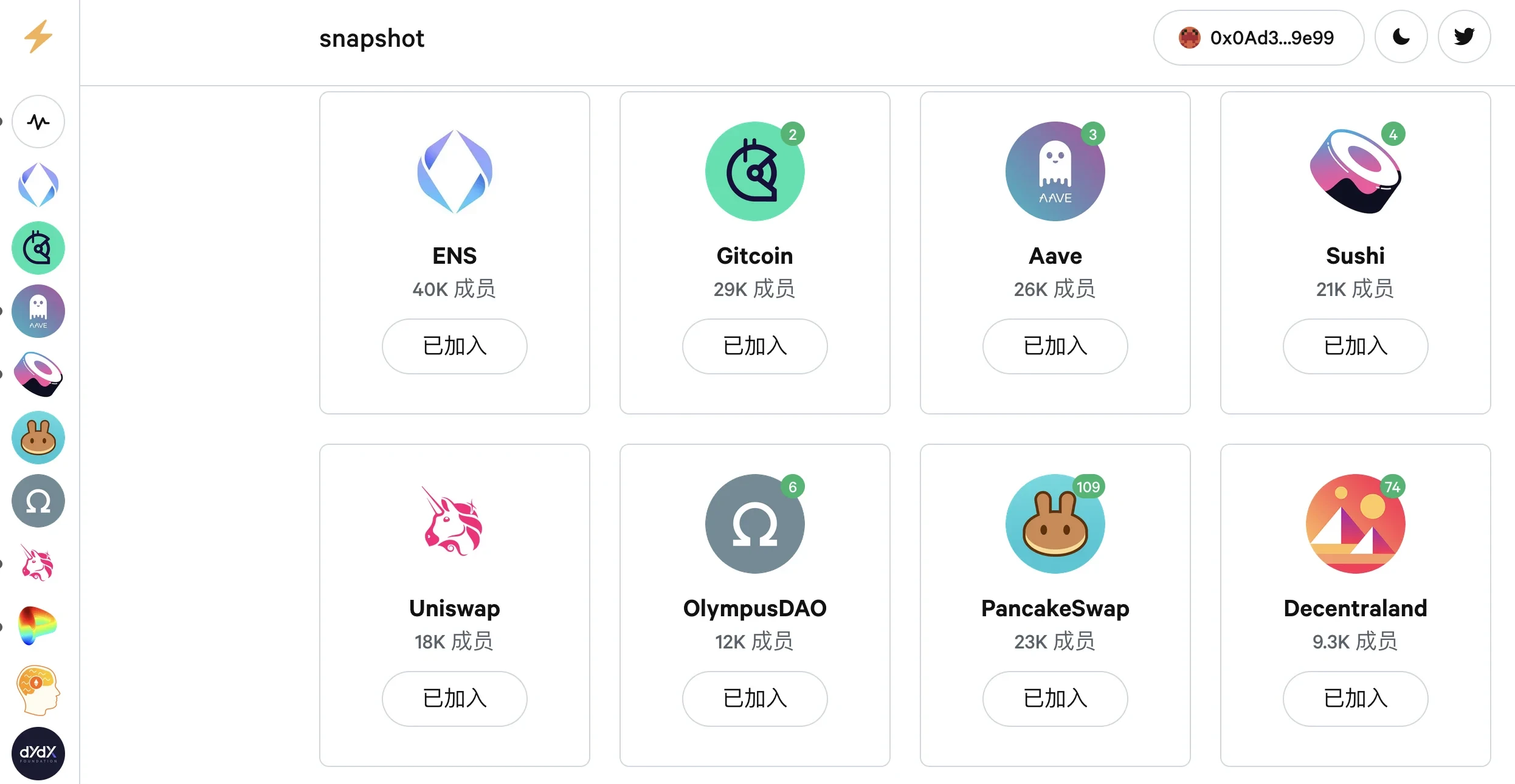 事实上,Web3世界的投票与治理早已像呼吸一样重要平常与简单。只需要连上MetaMask钱包,存入代币,如果要参与ENS治理,就存入相应的ENS代币,链接snapshot,就可以为提案投上支持与反对票了。